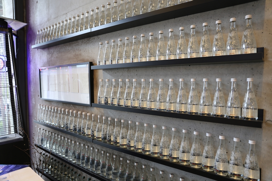 입구 왼쪽에는 수없이 나열된 물병들을 보실 수 있는데요. 물의 통로라는 아이사구아의 의미답게 인테리어적으로도 카페의 의미가 꾸며져 있답니다. 왜 이렇게 많은 물병이 필요한지 그 이유는 나중에 메뉴를 주문해보면 알 수 있어요.