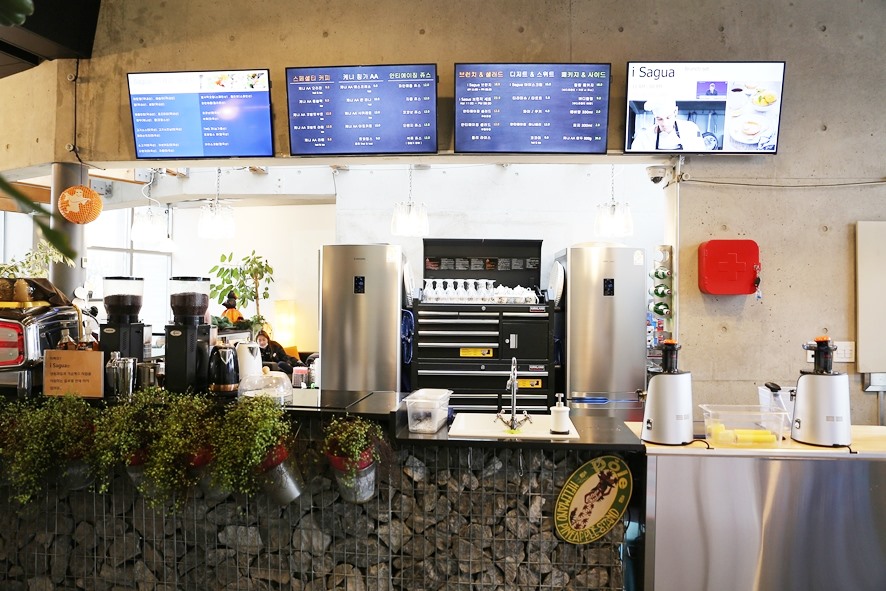 동동이도 이곳 시그니처 음료를 경험해보고자 곧바로 주문을 해보았는데요. 카페 아이사구아에서는 커피와 주스 같은 음료뿐만 아니라 브런치, 디저트류들도 함께 판매하고 있었고 생각보다 많은 분들이 브런치를 즐기고 계셨답니다.