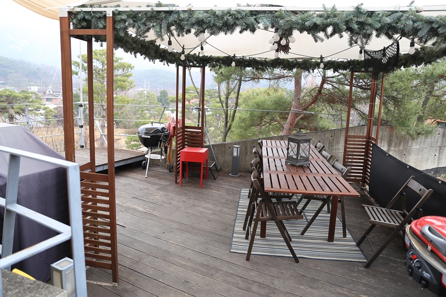 2층 한편에는 테라스가 위치하고 있는데요. 바비큐 그릴이 눈에 띄는 것처럼 예약을 하게 되면 일반 손님들에게도 이용료를 받고 장소, 시설을 대여해주는 장소였어요.