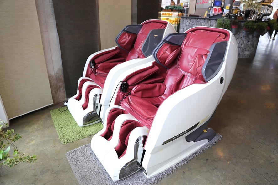 차분한 마음의 힐링도 좋지만 몸의 피곤함까지 함께 해결했다면 그 이상의 힐링이 없을 텐데요. 이곳 카페 아이사구아 1층에는 총 4대의 안마의자가 구비되어 있어 일정 금액을 내면 안마의자와 음료를 함께 이용할 수 있어서 일주일의 마음과 육체의 피로를 모두 씻어낼 수 있답니다. 경치를 바라보며 마사지를 받는다면 정말 무릉도원이 아닐까 싶네요^^
