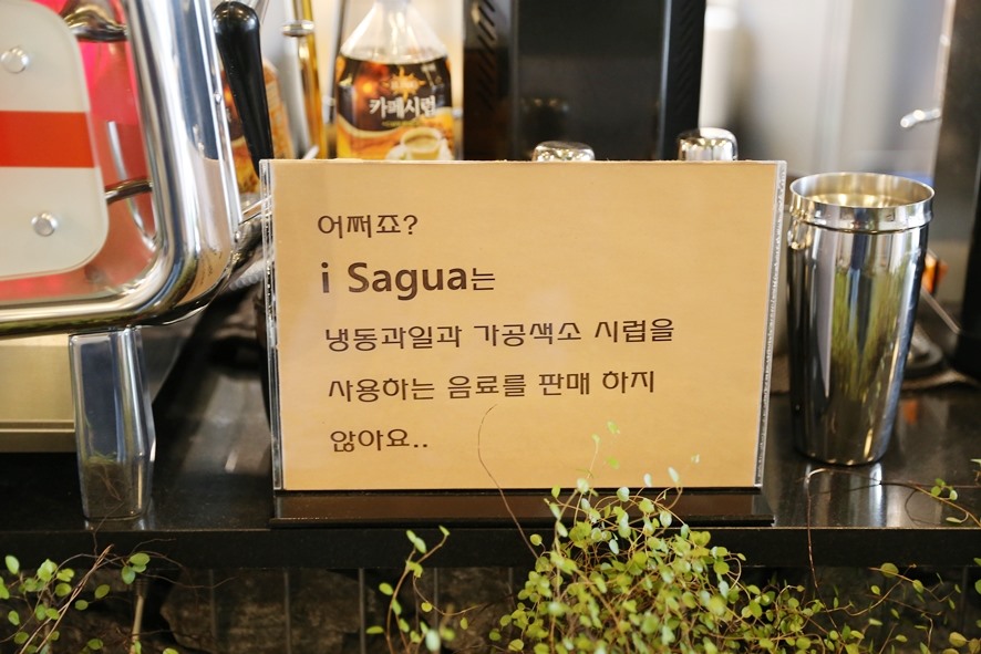 게다가 아이사구아의 시그니처 음료라고 할 수 있는 파인애플 주스를 비롯해서 다른 모든 종류의 생과일 주스들의 재료는 냉동과일과 가공색소 시럽을 사용하지 않고 있어서 더욱 본연의 맛을 즐기실 수 있답니다.