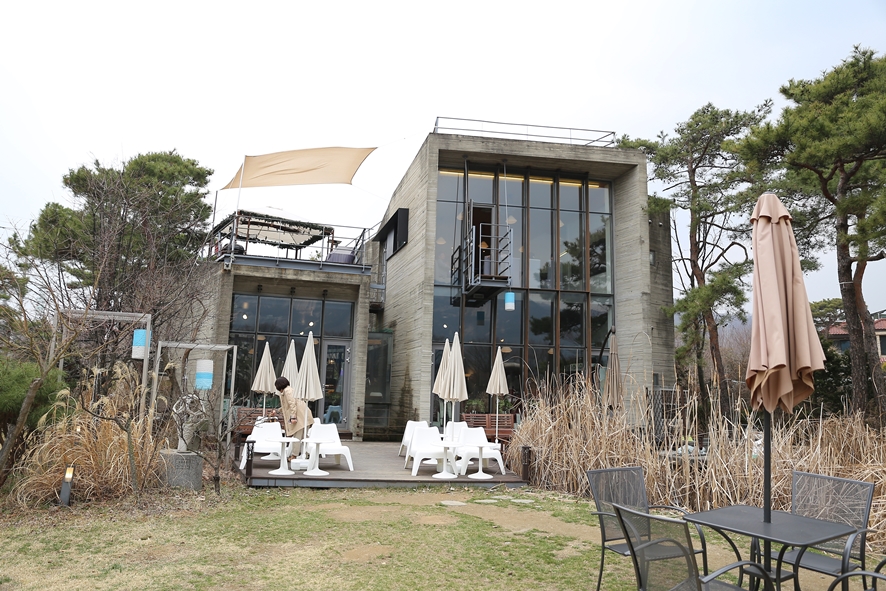 1층을 통해서 외부로 나오게 되면 이곳 카페 아이사구아의 진정한 힐링 포인트를 만나보실 수 있는데요. 동동이가 다녀온 시기에는 3월 꽃샘추위가 한창이라 DB가족들이 방문하시는 4월부터는 푸른빛이 넘실거리는 핫플레이스가 되어 있지 않을까 싶어요~
