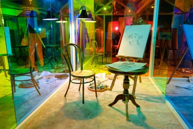 전시장은 ‘PROLOGUE 꽃의 연희’, ‘Ⅰ 몽마르트 가든’, ‘Ⅱ 미디어 화랑’, ‘Ⅲ 드로잉 뮤지엄’, ‘Ⅳ 그녀의 실루엣’, ‘Ⅴ 우아한 위로’, ‘Ⅵ 르누아르의 아틀리에’, ‘EPILOGUE 그의 향기’ 등 여러 개의 방으로 구분하여 그의 예술 세계를 감상할 수 있는데요.