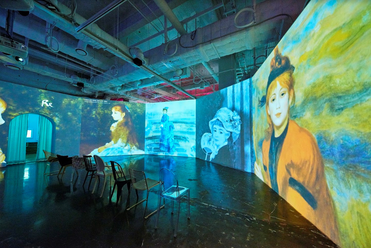 이번 르누아르전은 르느와르의 눈부신 색채와 생동감 넘치는 묘사, 특히 여성이 발산하는 매력과 특유의 부드러움을 능숙하 묘사한 르누아르의 작품들을 컨버전스 형태로 풀어내어 메디힐링과 우아한 위로로 행복한 순간을 전달하고자 했는데요.