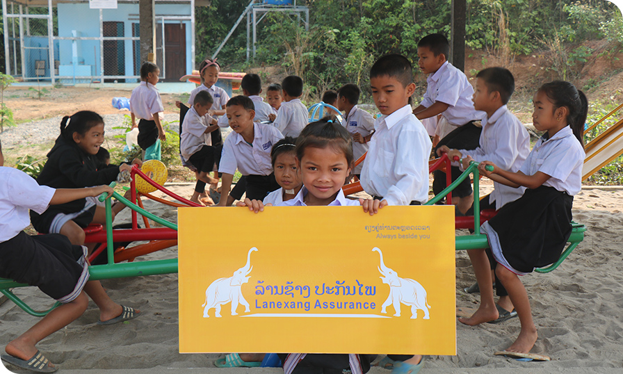▲귀여운 아이가 DB손해보험의 손자회사인 라오스 란셍보험사의 판넬을 들고 포즈를 취해 주었다.