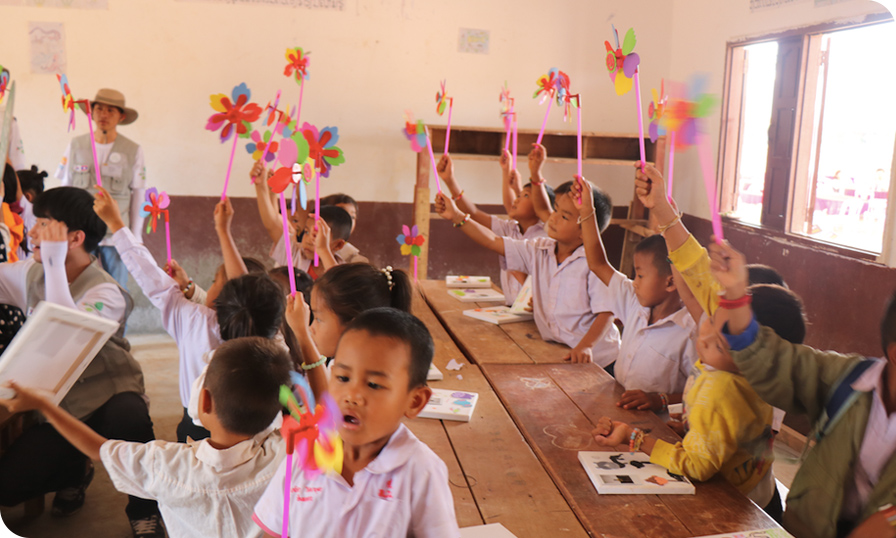 봉사 3일차에는 현지 아이들과 함께 하는 교육 봉사를 진행했다. 오전 만들기 시간에는 봉사단이 한국에서 준비해 간 다양한 교구를 활용해 바람개비, 구슬팔찌, 폴라로이드 액자, 안전우산 등을 만들며 특별한 시간을 가졌다. 알록달록 예쁜 색감으로 구성된 재료를 만지는 고사리 손들이 귀엽기만 하다. 이어지는 오후는 체육시간. 역시 아이들한테는 뛰고 구르는 게 최고다. 봉사단이 준비한 과자따먹기, 투호, 딱지치기, 도미노 게임 등을 하며 아이들은 에너지를 한껏 발산했다. 순수하고 천진난만한 아이들의 웃음에 봉사자들도 자연스레 따라 웃는다.