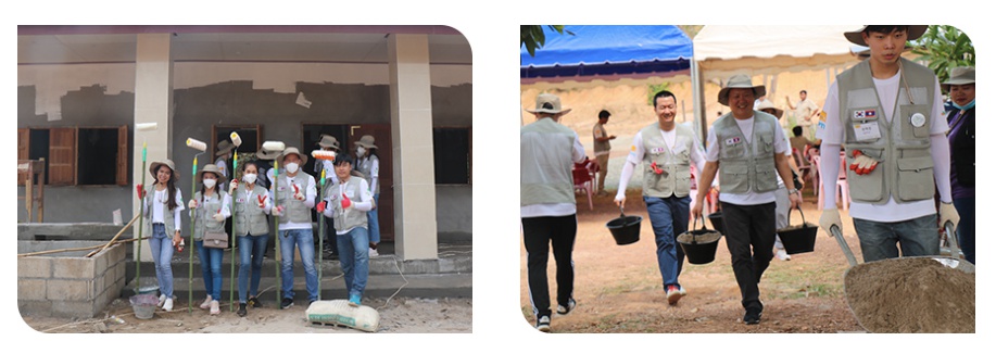 일정상 학교 보수공사를 첫 날 끝내야 했기 때문에 봉사단의 손은 바삐 움직였다. 봉사자들은 각자 맡은 활동에 따라 초등학교 및 유치원 건물 내·외벽에 페인트칠을 하고, 새 놀이터에 모래를 깔았다. 또 아이들이 사용할 새 놀이기구와 책걸상 마무리 작업도 도맡았다. 이밖에도 천장 기둥 보강 공사, 전기 인입, 선풍기 설치 등 아이들의 안전과 편의를 위한 활동들이 진행됐다. 찰떡호흡을 자랑한 봉사단과 현지 장학생들 덕분에 모든 작업이 순조롭게 마무리 됐다.
