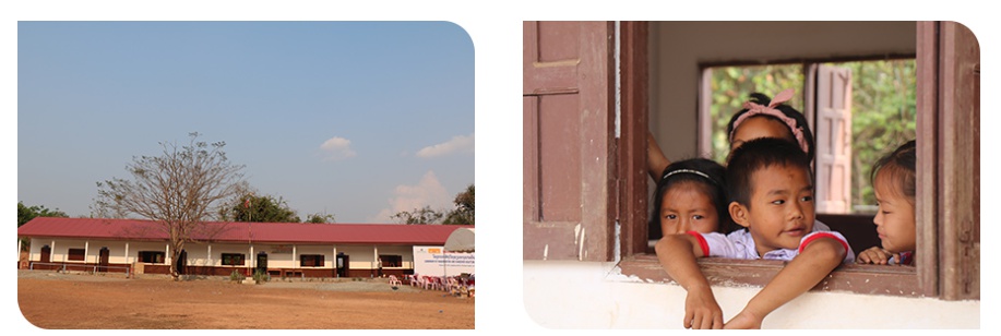 ▲후와이똠 학교 전경 / 봉사하는 모습을 훔쳐보는 아이들