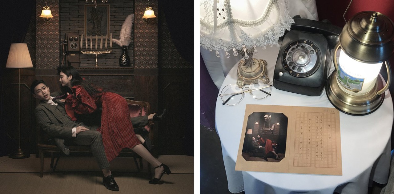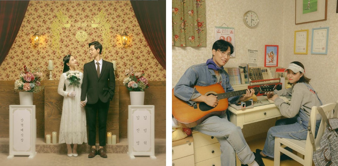 그 중에서도 근대 분위기의 '경성시대' 컨셉이 가장 인기인데요. 1980년대 예식을 연상시키는 '복고웨딩' 세트의 경우 이름을 쓴 서약서에 사진을 넣어 간직할 수 있답니다. '응답하라 1988' 시리즈도 인기에요.