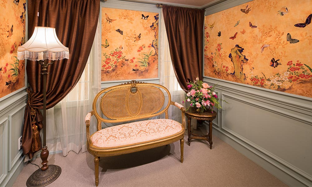 샹들리에, 화려한 커튼으로 럭셔리하게 꾸며진 1층 리셉션은 기마상 데스크, 당시 시대상과 '호텔 캐슬'의 역사를 보여주는 사진 등 다양한 전시 관람까지 가능한데요. 2층은 차분하고 고급스러운 응접실, 화려한 꽃 무늬 벽지와 화장대가 놓인 객실, 벚꽃이 흩날리는 풍경이 보이는 테라스까지 알차게 구성되어 있어요.