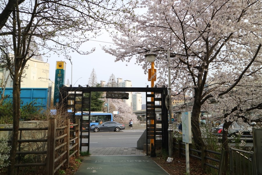 반포천 벚꽃길은 동작역 1번 출구에 자리잡고 있는데요. 1번 출구로 나오면 바로 허밍웨이길이 시작 된답니다. 이 허밍웨이 산책길은 반포천의 산책로이기도 하지만 동동이가 추천드리는 반포천 벚꽃길의 시작점이기도 한데요. 시작 지점과 끝나는 지점이 동일하기 때문에 자가운전보다는 대중교통으로 방문하는 것을 추천드린답니다. 사람도 많지 않고, 외부 방문객보다는 동네 주민들의 산책 비율이 더 높기 때문에 사람이 많아 혼잡한 벚꽃축제보다는 더욱 더 쾌적하게 벚꽃놀이를 즐길 수 있는 장소에요.