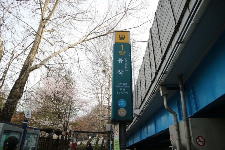 이 곳 동작역으로 벚꽃놀이를 오시는 분들이라면 현충원으로 벚꽃을 함께 구경하기 위해 방문하시는 경우도 꽤 많은데요. 하지만 현충원과 가까운 출구는 9호선 라인의 동작역 8번 출구이고 반포천 산책길은 4호선 라인의 동작역 1번 출구에 있어 지하철 출구 간의 거리는 꽤 떨어져 있는 편이랍니다. 걸어서 10분 정도의 거리이기 때문에 만약 코스를 짜서 오신다면 이 점 참고해주시면 좋을 것 같아요!