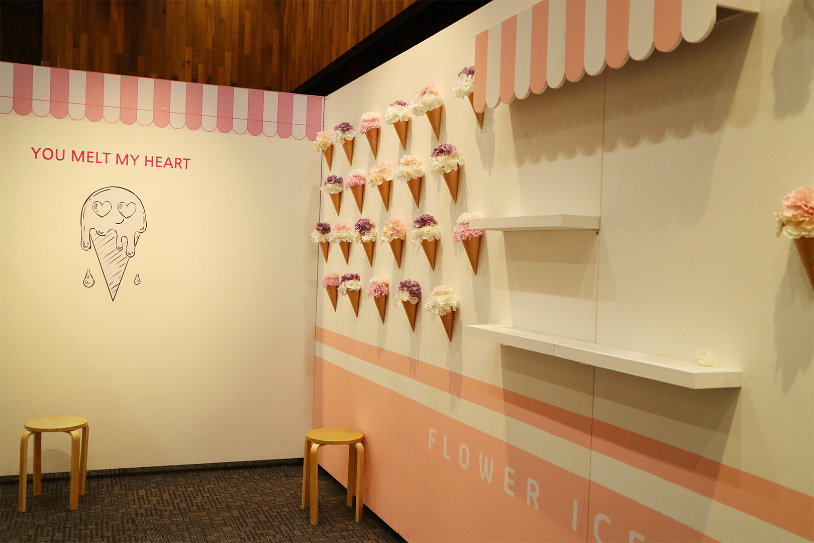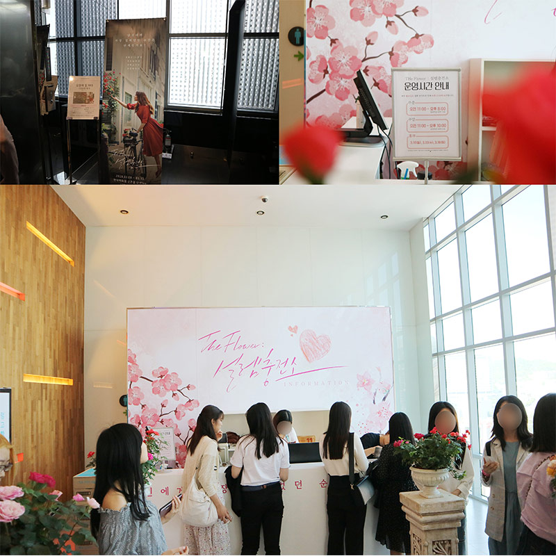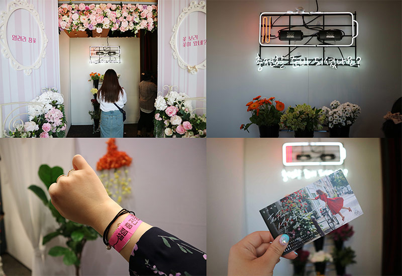 다음으로 나오는 공간은 예쁘게 연출된 플라워 카페를 볼 수 있어요. 유럽식으로 장식된 테이블과 깔끔한 꽃병, 화려한 녹색 빛깔까지 인상적인 사진을 남기기에 제격인데요. 길거리 데이트를 즐기는 느낌을 주기 위한 자전거 오브제, 해외여행을 간듯 한 프로방스 테마 그리고 아이스크림으로 된 벽면까지 이 부분은 첫 데이트의 설레는 순간들을 담아내기 위해 꾸며졌다고 해요.