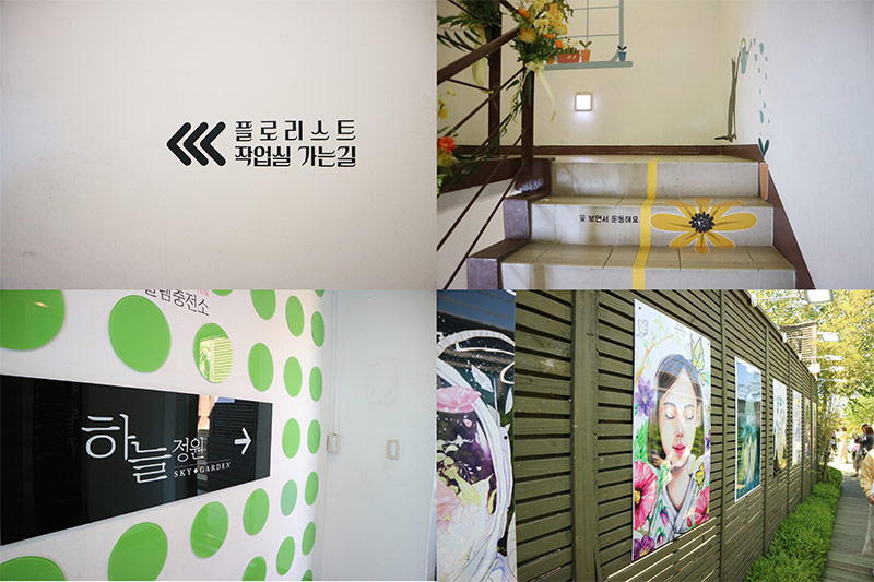 12층의 전시를 모두 관람했다면 계단을 이용해 13층의 하늘 정원으로 향할 차례인데요! 올라가는 계단 곳곳에 달콤한 멘트들이 숨어 있어요. 벽면의 귀여운 고양이 그림들을 보며 하나 둘 계단을 오르다보면 꽃향기 가득한 옥상정원이 펼쳐지는데요^^ 동동이만의 꿀팁을 하나 알려드릴게요! 만약 12층에 사람이 몰려 줄을 서야 한다면 13층을 먼저 가서 사진을 찍고 12층을 관람하는 것도 좋은 방법이랍니다! 5월은 특히 햇빛이 밝고 예쁠 때라 그런지 실내와는 달리 자연광이 가득해 더욱 화사한 인생샷을 남길 수 있었어요.
