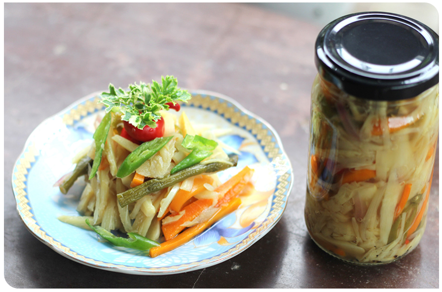 삶은 죽순은 물에 담가 그대로 식힌다. 완전히 식은 죽순을 건져 물기를 빼고 조각조각 잘라 맛을 보면 달착지근함이 입 안 가득 은은하게 퍼진다. 죽순은 사실 맛보다는 아삭아삭 씹는 재미로 즐긴다. 연하게 간을 한 밥 위에 고추냉이 살짝 바르고 얇게 썬 죽순을 얹으면 사각거리는 초밥이 된다. 소금 참기름 장에 살짝 찍어 신선한 숙회로도 먹고, 봄채소와 삶은 고기, 해물을 함께 넣고 무침으로 먹어도 맛있다. 다른 채소와 썰어 장아찌나 피클로 만들어 두면 두어 달은 신나게 죽순의 아삭거림을 맛볼 수 있다.