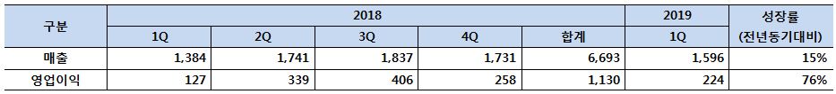 국내 대표적인 시스템반도체 파운드리(위탁생산) 회사인 DB하이텍(대표: 최창식 사장)이 14일 공시를 통해 2019년 1분기에 매출 1,596억원, 영업이익 224억원을 기록했다고 밝혔다. 전년 동기에 비해 각각 15%, 76% 증가한 수치다.