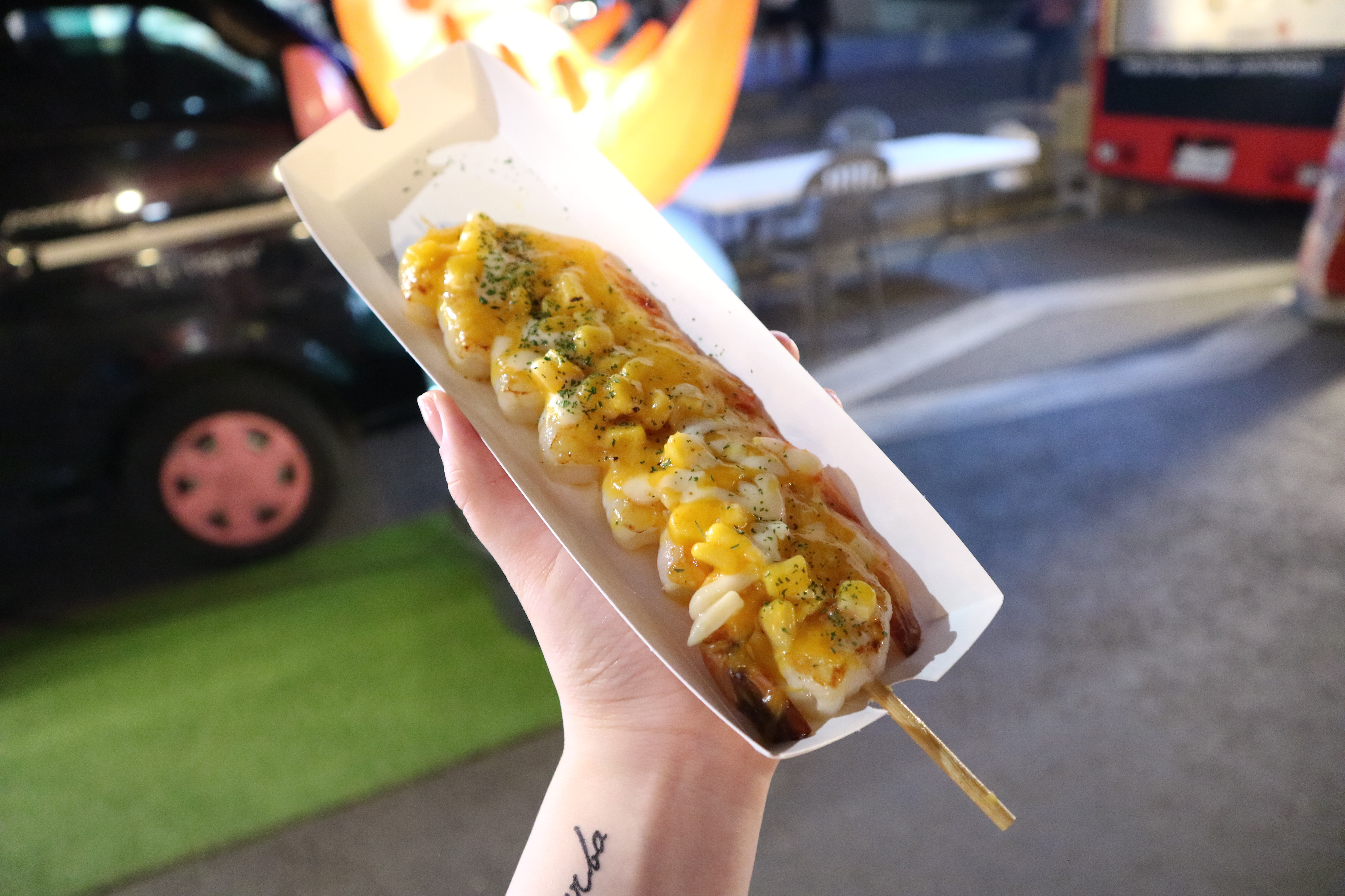 신나게 밤도깨비 야시장 일대를 구경하다보니 어느새 마감 시간인 9시가 가까워졌더라구요. 동동이는 마지막으로 나가는 곳 근처에서 조개관자구이를 주문했어요. 대략 4,000-8,000원대의 푸드트럭 음식에 비해 관자구이는 10,000원-13,000원으로 가격대가 조금 높았는데요. 생각보다 관자의 양이 거의 없고 양파가 절반 이상이라 살짝 실망스러웠어요. 동동이는 여태껏 다양한 푸드트럭을 먹어봐왔지만 개인적으로 만족도가 가장 높은 푸드트럭은 꼬치류와 고기류였어요.