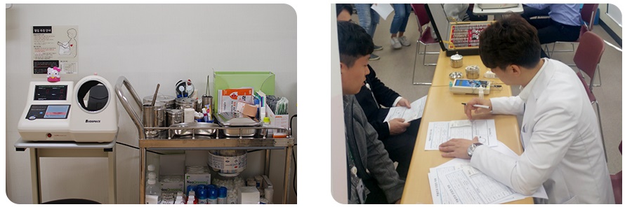“흔히 보건관리사라고 하면 학창시절의 양호선생님을 떠올리시는데요(웃음). 물론 몸이 아픈 직원들이 찾아오면 상담하고 적절한 약을 처방하고, 필요할 경우 외부 병원에 연계해 추가적인 진료를 돕는 일도 하고 있습니다. 뿐만 아니라 장기적으로 직원들의 건강을 통합적으로 관리하기 위한 프로그램과 내부 시스템을 구축하는 일이나, 각종 안전사고에 즉각적으로 대처하는 것도 주요 업무 중 하나입니다.”