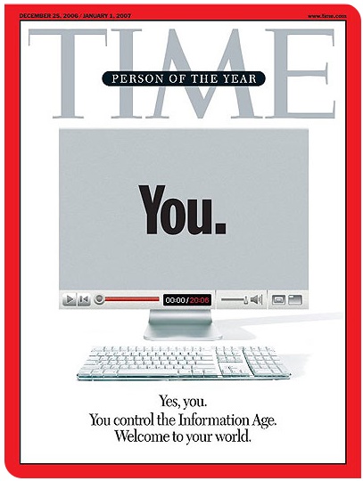 ▲ 2007년 1월 타임지 표지. 뉴욕의 <TIME>지는 2007년 ‘올해의 인물’로 유튜브(YouTube)와 당신(You)을 의미하는