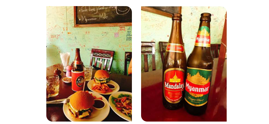 ▲ 바간 맛집으로 유명한 수제 버거집이다. 이곳에서 처음 미얀마 맥주와 만달레이 맥주를 마셔봤는데, 미얀마 맥주는 소주와 카스를 섞은 바로 그 맛이다!! ‘쏘맥’을 마실 때 카스를 선호하는 사람이라면 미얀마 맥주를, 풍미가 강한 맥주를 선호하는 사람이라면 만달레이 맥주를 추천한다.