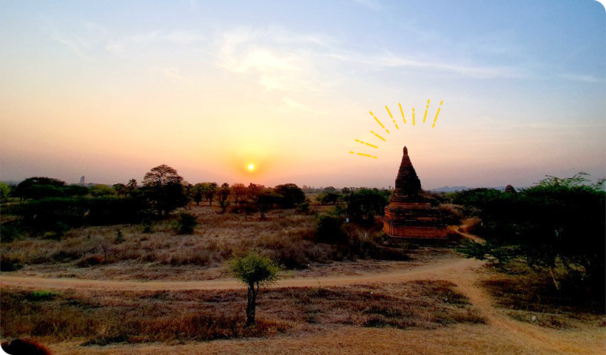우리는 양곤→바간(냥우)→양곤 코스로 여행 일정을 짰다. ‘천불 천탑’의 나라답게 미얀마 전역에는 4천여 개의 불교 사원이 있다. 그 중 바간에만 1천여 개의 사원이 모여있다. 대부분 바간왕조 시대에 지어진 사원이다. 당시 소승불교의 영향을 받은 바간의 왕들이 자신의 수도를 상징하는 건축물로 지은 것이 대부분이다. 동남아시아 지역에서 가장 부유한 왕조였던 바간은 자신들의 권력과 부를 과시하듯 화려한 황금으로 장식된 사원을 지었다. 자국의 노예뿐 아니라 인근 태국과 라오스에서 자발적으로 건너온 노동자들이 참여해 이토록 많은 사원을 단시간에 지을 수 있었다고 한다.