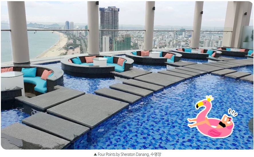 우리가 5박 6일 동안 머문 숙소는 Four Points by Sheraton Danang 이었다. 다낭국제공항에서 차로 20분 정도 떨어진 곳에 있는 호텔이다. 시내와는 거리가 조금 있지만 지은지 얼마 되지 않아 내부 시설은 아주 깔끔했다. 가성비 좋은 숙소를 찾는 사람들에게 꼭 추천하고 싶은 곳이다.