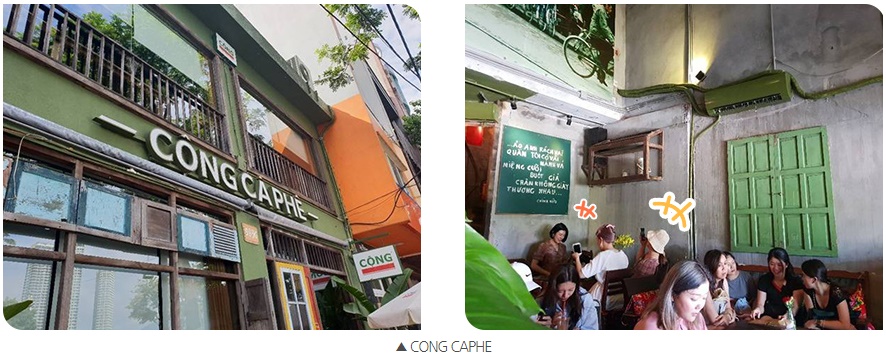 식사를 마친 뒤에는 근처에 있는 콩카페로 갔다. 콩카페의 코코넛커피는 요즘 인스타그램의 핫 아이템 중 하나. 이태원과 연남동에도 체인이 들어와 베트남에 있는 콩카페의 분위기와 메뉴를 그대로 재현해 놓았다. 아무리 그래도 현지의 느낌을 살리기란 쉽지 않은 법. 다낭 시내에 있는 콩카페는 전체적으로 짙은 녹색의 인테리어가 인상 깊은 곳이다. 직원 유니폼도 그렇고 딱 베트남 인민군의 분위기를 풍긴다. 코코넛커피는 이곳에서 처음 맛보았는데, 달달한 게 내 입에 딱 맞았다. 아마 한국에 가서도 다낭 여행을 떠올리며 종종 찾을 것만 같다.