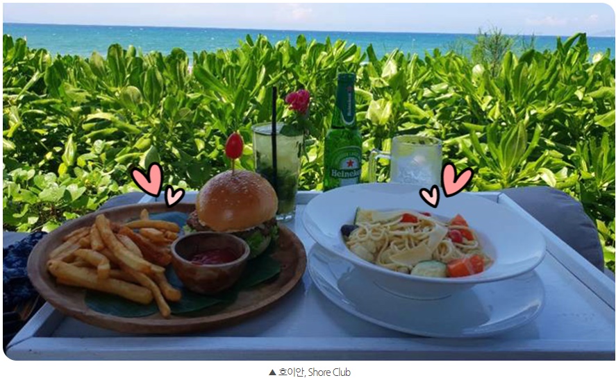 안방해변에서 찾은 음식점은Shore Club이다. 이곳은 일단 뷰가 너무 예쁘다. 광고에 나올 법한 인테리어에, 소파에 누워서 바다를 바라볼 수 있도록 한 배려가 특히 마음에 들었다. 우리는 햄버거와 파스타, 그리고 맥주와 모히또를 주문하고 쪽빛 바다를 멀리 바라 보았다. 천국이 있다면 바로 이런 곳일까. 분위기가 좋은 음식점을 찾고 있다면 꼭 들러봐야 하는 곳이다.