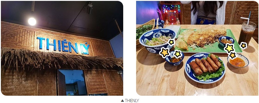 신나게 먹었으니 그 다음은 뭐? 바로 쇼핑 타임이다! 우리는 콩카페 근처에 있는 한시장으로 향했다. 꽃과 나무가 어지럽게 프린트 되어 있는 셔츠와 베트남 전통 모자, 기념품 등을 구경하는 재미가 쏠쏠하다. 덥고 습한 다낭은 실내에 가면 어디든 에어컨 시설이 빵빵하게 잘 되어 있다. 그래서 밖은 상대적으로 많이 덥다. 향신료 특유의 독특한 냄새도 수시로 코를 자극한다. 시장에서도 마찬가지였다. 더위와 특유의 냄새만 제외하면 아주 흥미로운 곳이다. 저녁은 역시나 구글 지도 평점이 높은 THIENLY라는 현지 음식점에서 해결하기로 했다. 내 입맛이 아직 현지화가 덜 된 탓인지, 아니면 벌써 베트남 음식이 물리기 시작한 것인지, 고기 냄새도 조금 나고 점심에 비해서는 많이 아쉬웠다.