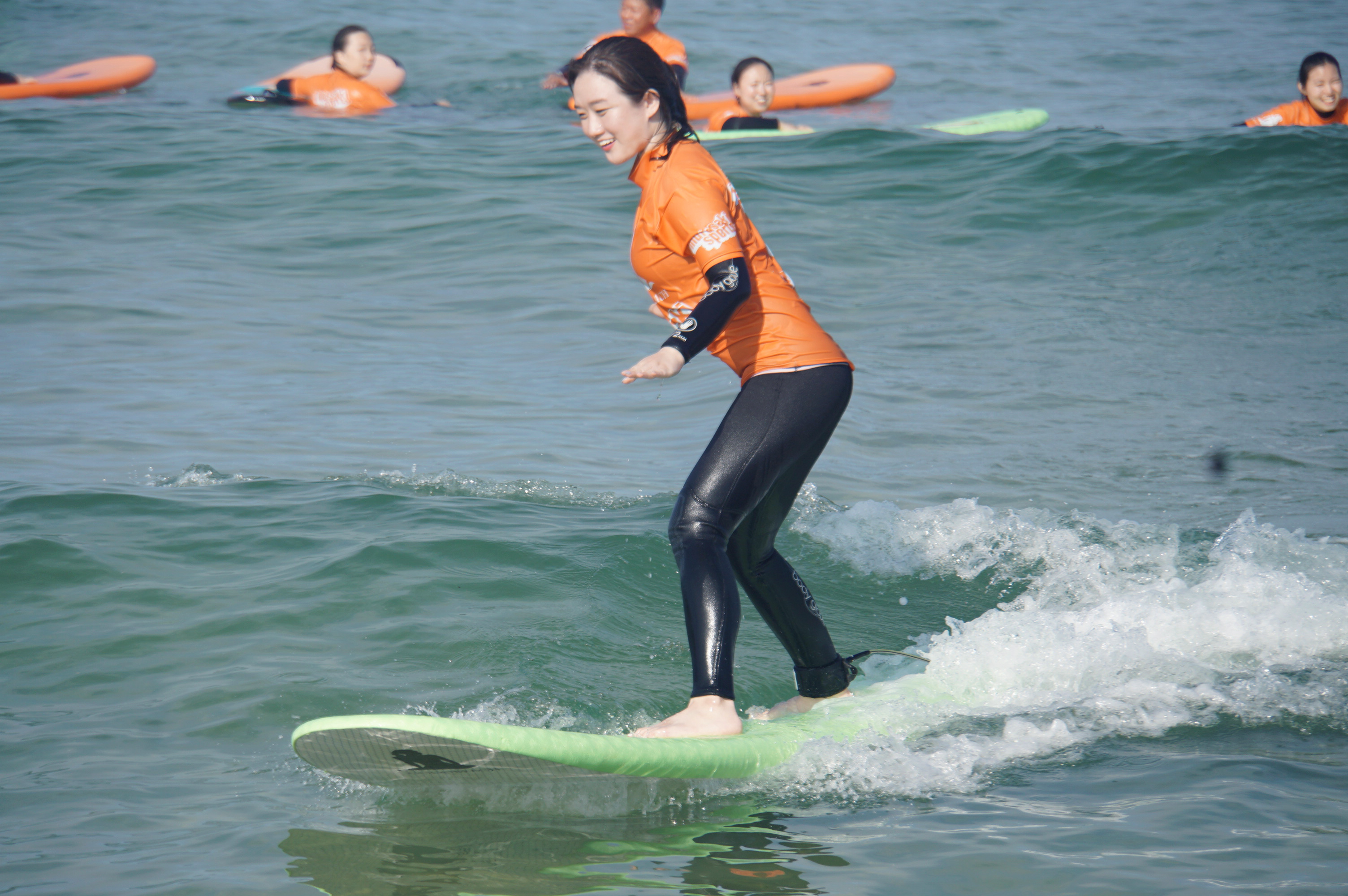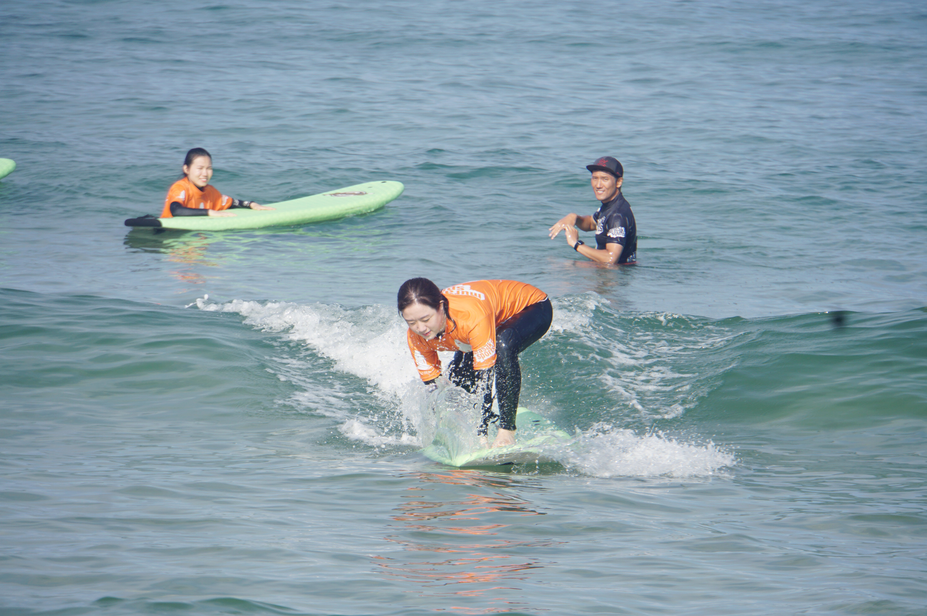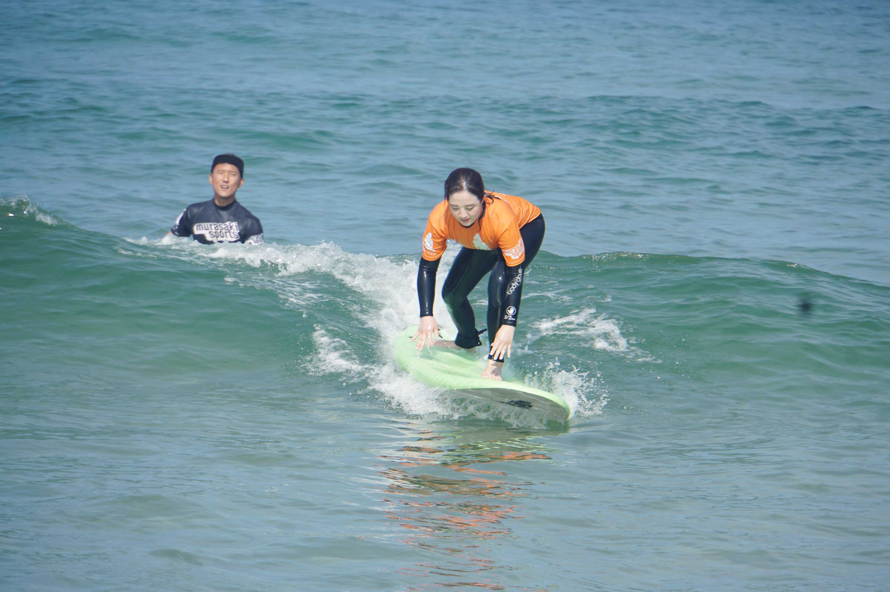 인당 각 10번 정도의 수중 실습을 진행한 것 같아요. 처음에는 다들 익숙하지 않아 일어서지 못하거나 넘어지는 경우가 대부분이었지만, 회차가 지날수록 보드에서 빠르게 일어나 서핑을 즐기기 시작하는 입문자들이 보이기 시작하더라구요. 동동이는 나름 운동신경이 좋은 편이라고 생각했는데 막상 물 위에 선다고 생각하니 손이 쉽게 떨어지지 않아 초반에는 많이 힘들었던 것 같아요. 하지만 강사님이 여러 차례 자세 교정을 도와주시고 용기를 북돋아주신 덕분에 후반부에서는 동동이도 빠르게 보드 위에 설 수 있었답니다!