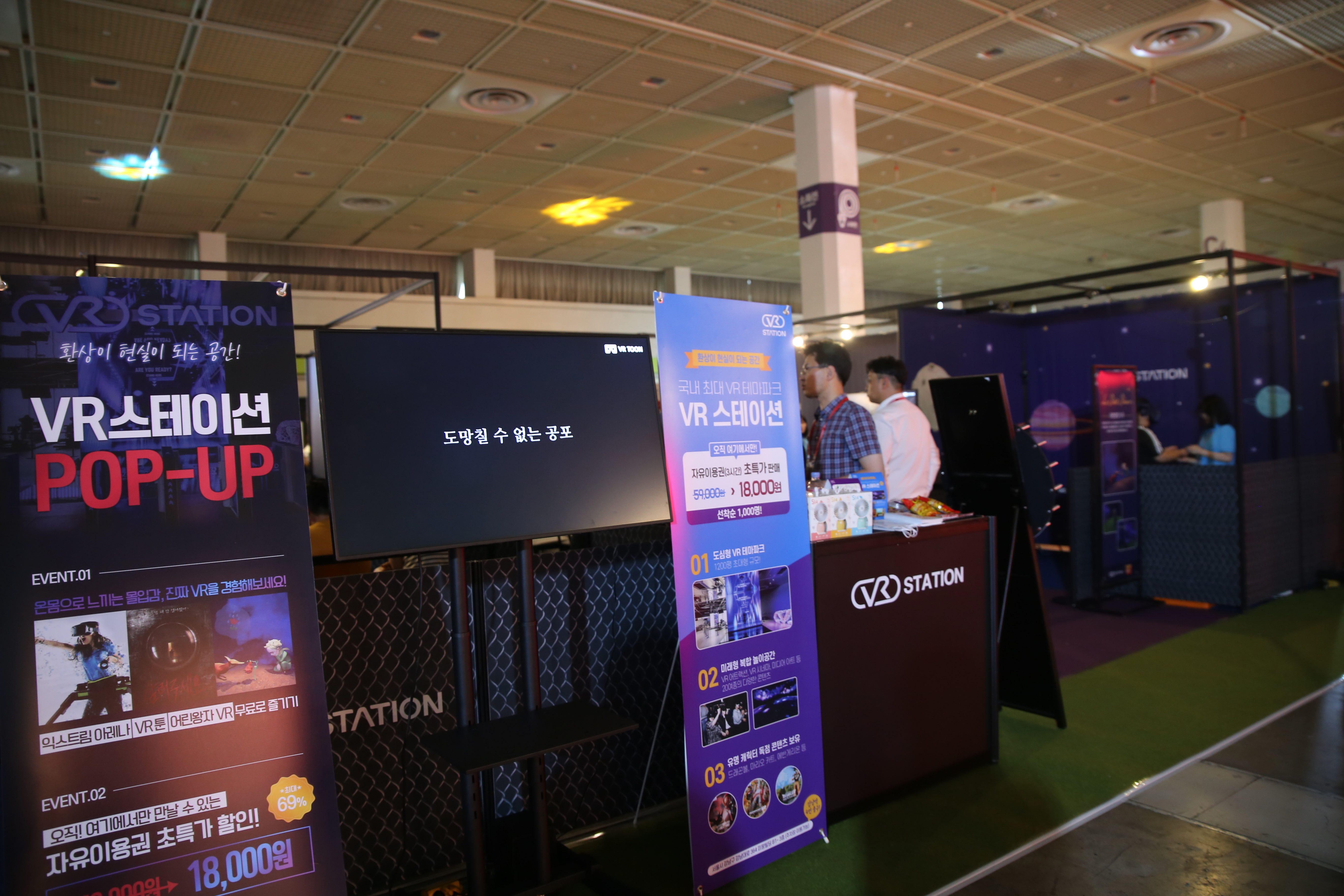 브릭캠퍼스의 어벤저스 모형, 코인 노래방, VR스테이션, 추억의 오락실 게임기 같은 체험형 부스들로 가득했던 행사장!