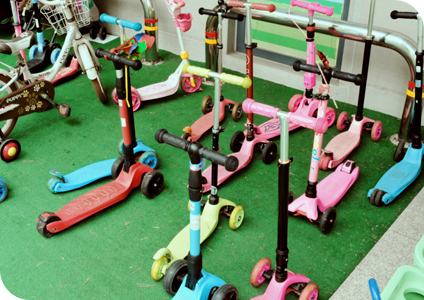 위례새솔어린이집은 0세부터 7세까지 재원생만 240여 명에 달하는 구립 어린이집이다. 입구에는 아이들이 타고 온 ‘전용 자가용’ 킥보드가 질서 있게 주차되어 있고, 언제든 그림책을 골라 읽을 수 있는 미니 도서관과 실내 키즈 클라이밍 시설까지 갖춘, 그야말로 아이들에게는 최고의 놀이터다.