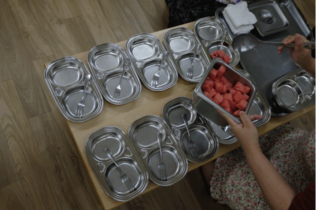 갑자기 로봇이 되어 버린 혜진이 덕분에 배달의 기수도 진땀깨나 뺐다. 그 와중에 간식 접시에 담긴 수박은 야무지게 냠냠 먹어 치우고 리필까지 해서 먹었으니 간식 배달은 성공!!