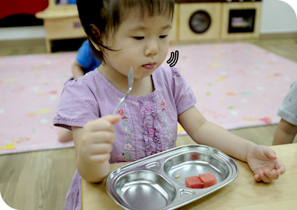 7살 첫째 효진이는 푸른하늘2반에서 20명 남짓의 친구들과 한 반 생활을 한다. 어린이집 최고참들답게 간식 시간에도 흐트러짐 없이 규칙을 지키며 일사분란하게 움직인다. 담임선생님께서 “효진이 어머님이 보내주신 간식이야.”라고 말하니 다들 호기심 반, 부러움 반 눈빛으로 효진이를 바라보며 “잘 먹겠습니다아~~”하고 인사를 한다. 불쑥 찾아 온 배달의 기수가 낯설었는지, 효진이는 엄마의 깜짝 선물이라는 말에 놀라고 기쁜 마음도 잠시 연신 쑥쓰러운 표정을 지어 보였다.