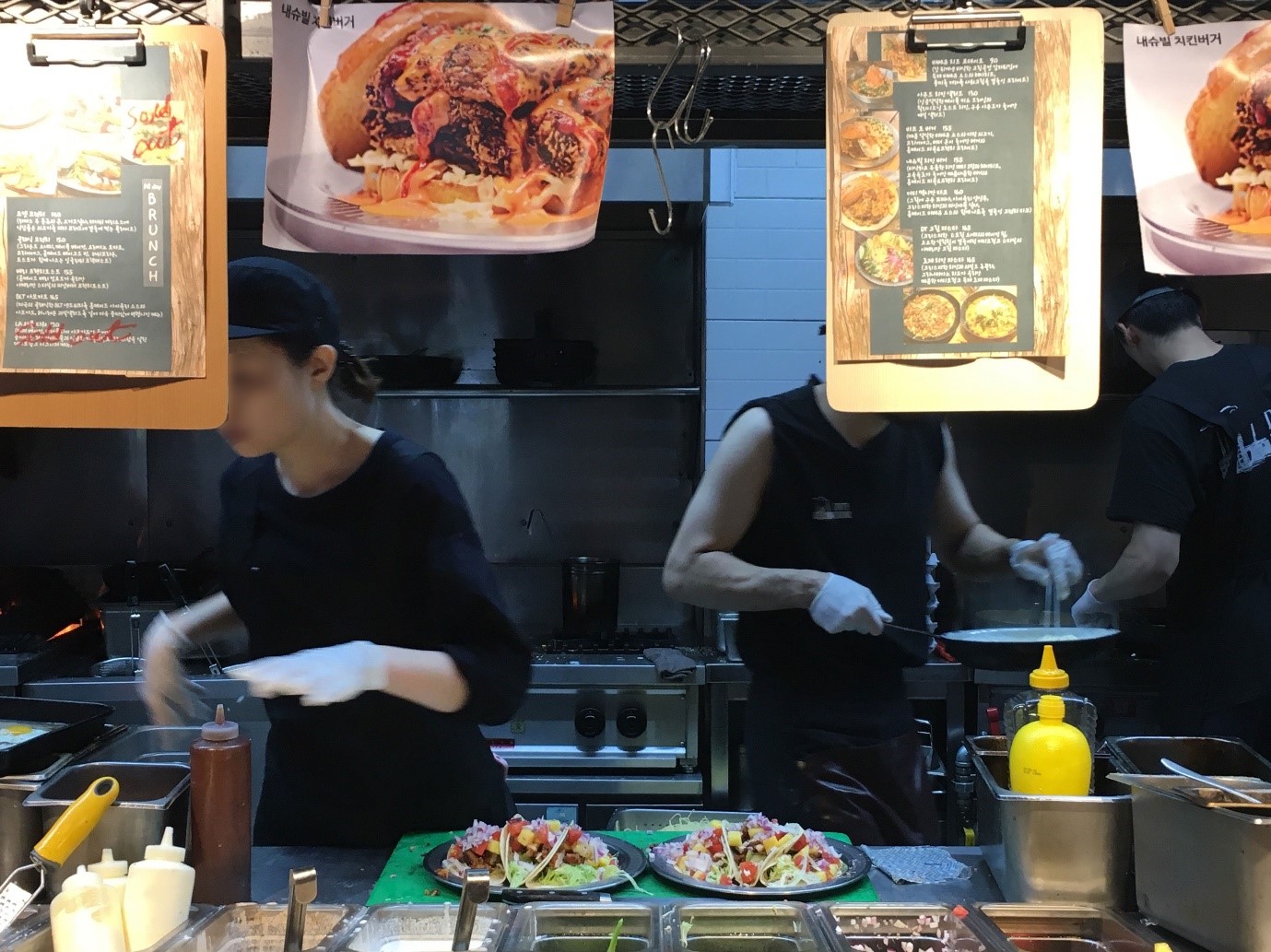키친은 오픈형이라 셰프들의 능숙한 요리 솜씨를 지켜보는 또 다른 재미를 느낄 수 있는데요. 최근에는 푸드 메뉴의 반응도 좋아 베이커리 매출을 앞지르고 있다고 해요.