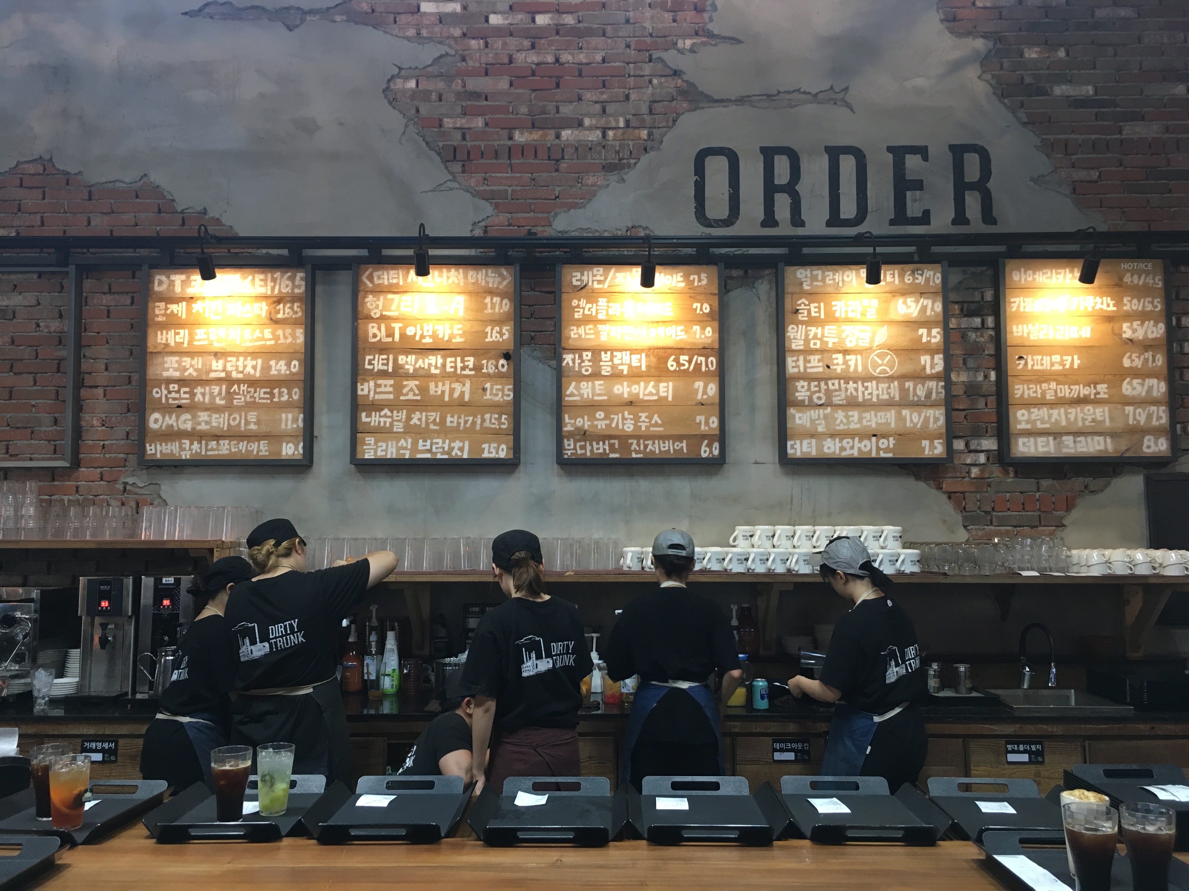 더티 트렁크는 캐주얼하고 자유로운 카페테리아를 기본 콘셉트로 취식과 퇴식 모두 셀프서비스로 매장을 운영하고 있어요. 그러면서도 동시에 레스토랑 수준의 메뉴 퀄리티와 서비스를 지향하고 있는데요. 고객의 편의를 실시간으로 체크하는 플로어팀을 구성하고, 셀프 시스템에서 발생하는 서비스 퀄리티 저하를 방지하기 위해 수시로 매장을 돌며 홀 컨디션을 쾌적하게 관리하고 있답니다.