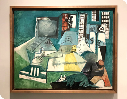 스페인의 가장 위대한 화가로 추앙받는 벨라스케스의 원작을 보고 변주해서 그린 것으로 50여 점이 넘는다. 색 활용이나 형태가 재치 있는 작품들이 많아서 보는 내내 절로 미소가 지어진다. 피카소의 작품을 실제로 보면 ‘못 그린 것 같은데 잘 그렸다’는 말이 무슨 뜻인지 깨닫게 된다.