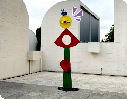언덕 위에는 호안 미로 미술관이 있다. 호안 미로는 피카소, 달리와 함께 스페인 대표 3대 거장으로 꼽힌다. 우리에겐 앞서 말한 두 화가만큼 친숙하진 않다. 그나마 최근 국내의 한 라면 회사가 ‘호안 미로 스폐셜 에디션’을 출시하면서 조금 더 알려졌다. 호안 미로의 작품은 수수께끼를 보는듯한 재미가 있었다. 그림을 감상하고 난 뒤 제목을 보면 ‘아, 그렇구나!’라는 감탄이 나온다. 아래 두 그림의 제목을 모른 채 한 번 감상해 보시라.