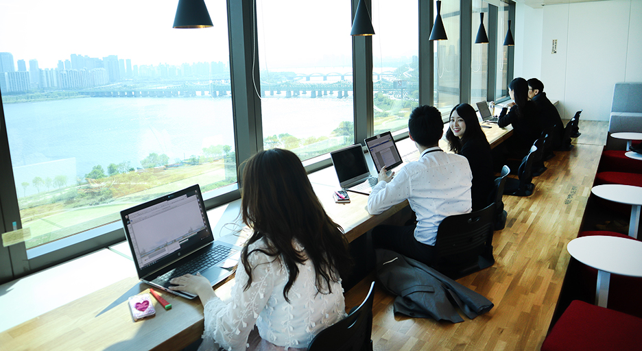 기업은 조직 관리와 CSR 활동에 커다란 방향 전환이 시급해졌다고 할 수 있어요. 일찍 출근하면 한강이 내려다보이는 63빌딩 '카페 마당'에서 일할 수 있도록 한 한화 63시티처럼 원하는 자리에서 일하는 자율좌석제가 도입되기도 하고, 호칭과 서열을 없애는 기업도 늘고 있어요.