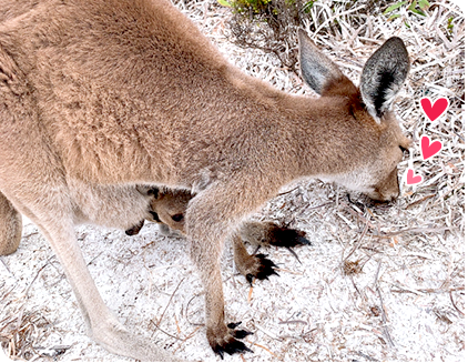 달리고 또 달려서 목적지인 에스페란스에 도착했다. 투명하고 푸른 바다가 한없이 펼쳐져 있는 모습이 너무나 아름다웠다. 바다 감상을 마친 우리는 에스페란스의 국립공원에 있는 ‘럭키베이’로 이동했다. 이곳은 야생 캥거루를 만날 수 있는 곳으로 유명하다. 모래가 쫀득쫀득한 찹쌀떡 같았다. 맨발로 모래를 밟는 것만으로도 힐링이 됐다.