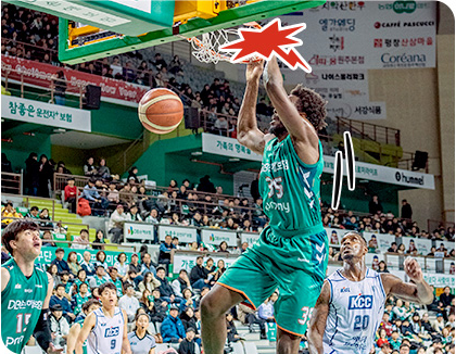 이유는 바로 사석을 살리기 위한 DB 프로미의 특별한 이벤트로, 올 시즌 개막과 함께 ‘열광 응원존’을 선보였다. 홈팀 벤치 쪽 골대 뒤 2층 관중석을 응원 특화구역으로 지정한 것이다. 이곳을 찾는 팬들에게 특별 응원도구를 지급하고 응원단장과 치어리더를 투입해 홈 팬들의 경기 보는 재미를 주고 있다. 팀 고유의 색상인 녹색으로 드레스 코드 문화까지 접목시켜 홈 관중의 소속감도 높였다.