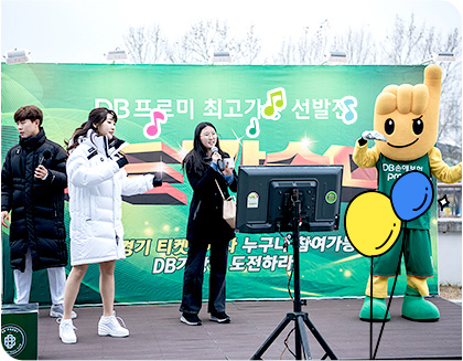 원주 DB 프로미는 팬 서비스 강화를 위해 다양한 시도를 하고 있다. 가장 눈에 띄는 변화로는 ‘공식 모바일 앱 출시’와 ‘열광 응원존 신설’이다. DB 프로미는 지난해 8월 팬들에게 더 나은 서비스를 제공하기 위해 ‘DB 프로미 공식 모바일 앱’을 선보였다. 앱 출시로 팀 소식 안내는 물론 홈경기 티켓과 구단 상품 구입, 이벤트 참여 등이 손쉽게 가능해졌다.