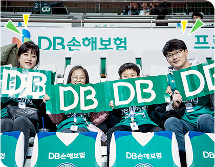 이유는 바로 사석을 살리기 위한 DB 프로미의 특별한 이벤트로, 올 시즌 개막과 함께 ‘열광 응원존’을 선보였다. 홈팀 벤치 쪽 골대 뒤 2층 관중석을 응원 특화구역으로 지정한 것이다. 이곳을 찾는 팬들에게 특별 응원도구를 지급하고 응원단장과 치어리더를 투입해 홈 팬들의 경기 보는 재미를 주고 있다. 팀 고유의 색상인 녹색으로 드레스 코드 문화까지 접목시켜 홈 관중의 소속감도 높였다.