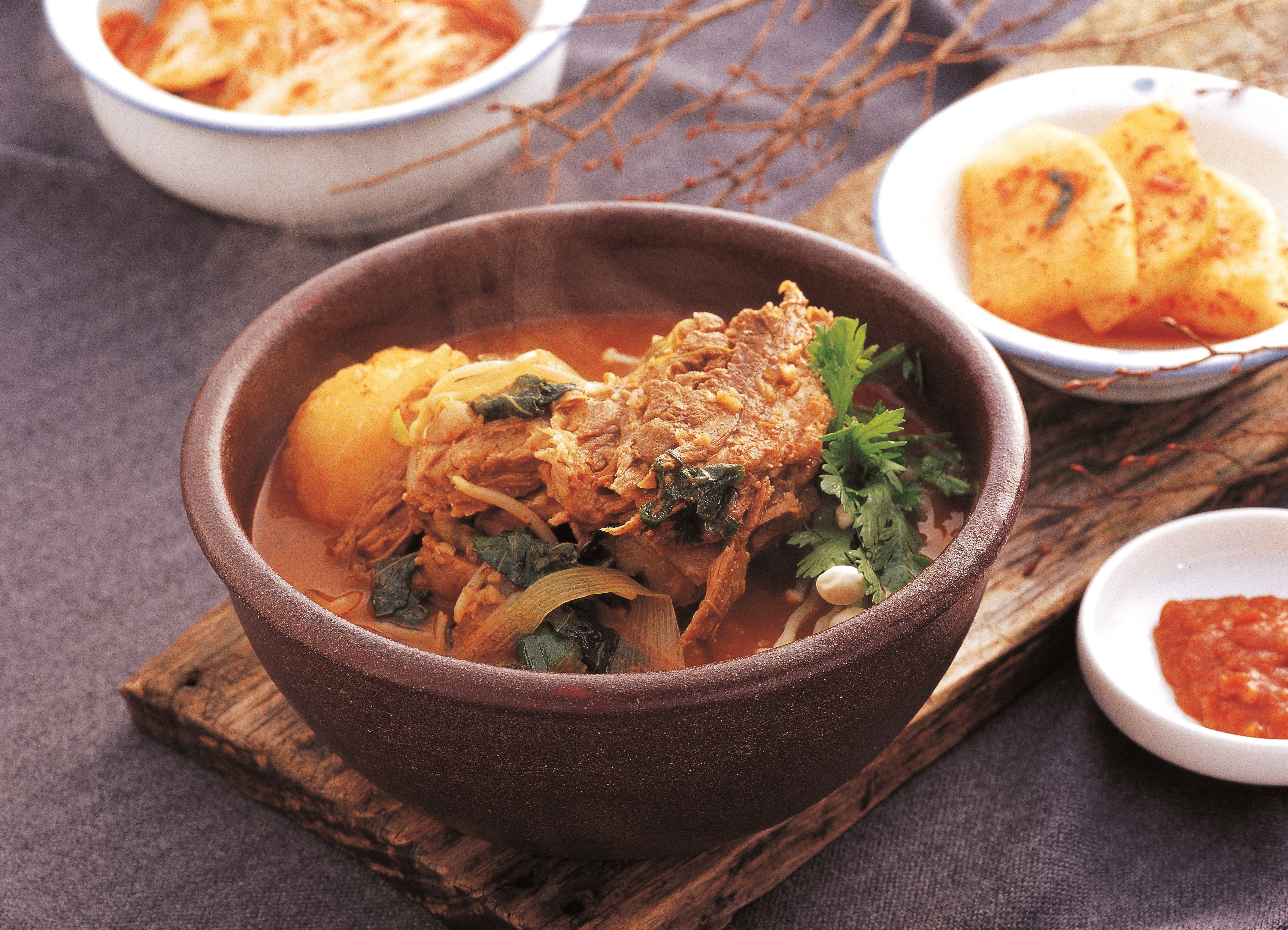 뼈 해장국은 소 뼈, 소고기를 넣고 푹 끓인 국물에 우거지, 콩나물 등의 고명을 얹어낸 해장음식의 대표 메뉴입니다. 주재료인 소고기에는 양질의 단백질과 필수 아미노산이 풍부하게 함유되어 있어 면역력 향상 및 근육 형성에 도움이 됩니다. 또 우거지에 함유된 비타민D는 숙취해소에 도움을 주고 식이섬유와 칼슘은 소화에 도움을 주어 해장 메뉴로 제격이에요.