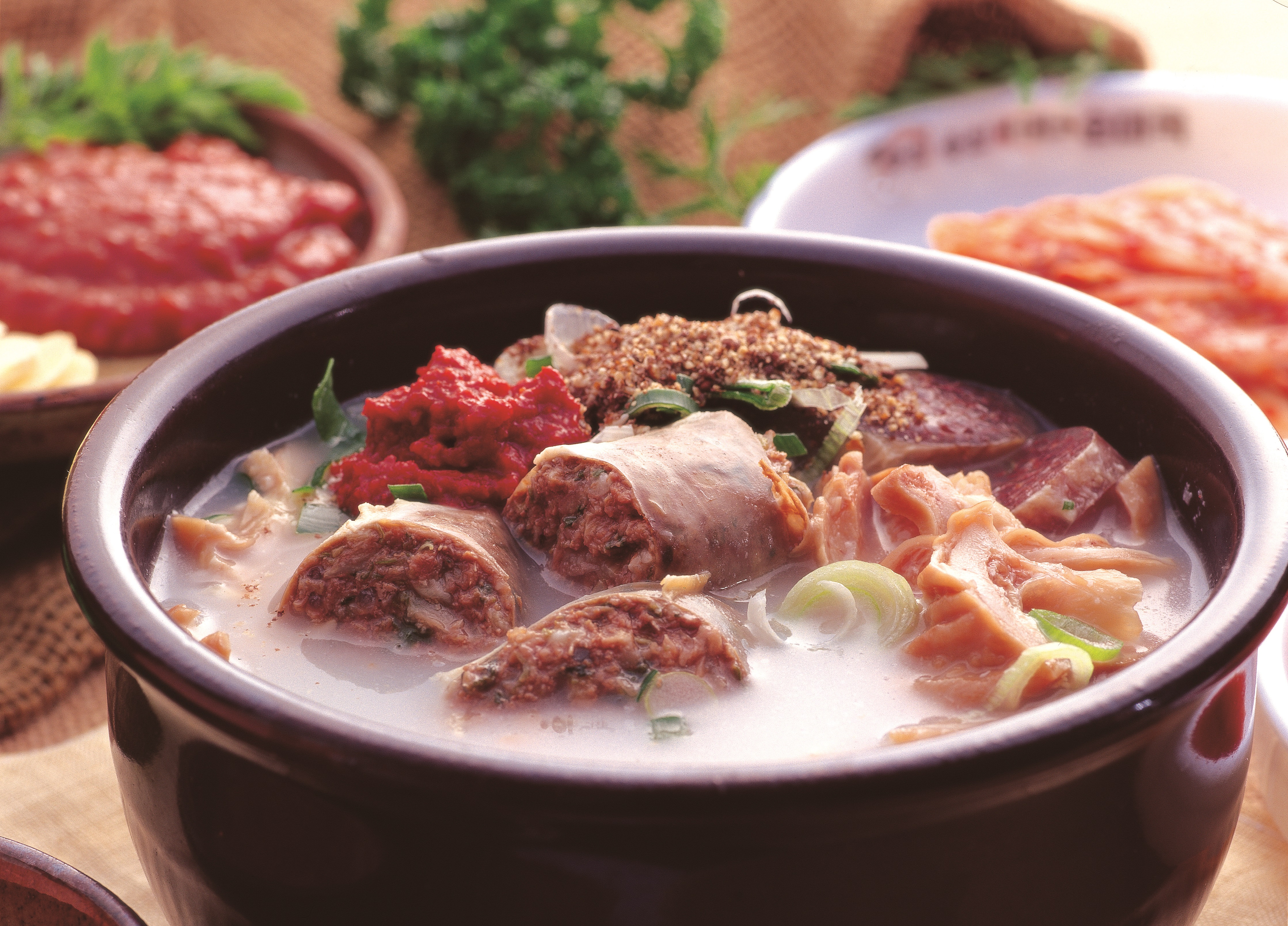 순댓국은 돼지 뼈를 우려낸 사골에 순대와 돼지 내장을 넣고 끓여낸 음식이에요. 순댓국에는 간이나 허파와 같은 돼지의 내장이 들어가 다량의 철분이 들어가며 셀레늄 성분이 노폐물 배출하는데 도움이 되어 해독 작용과 해장에도 탁월해요. 참고로 부산 등의 영남 지방에서는 순대가 아닌 돼지고기가 들어간 돼지국밥으로 해장을 하기도 합니다.
