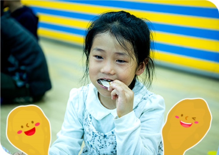 시영이와 수연이도 친구들 곁에 둘러앉아 간식을 맛봤다. 시영이는 제 바로 옆자리에 동생을 앉혀 먹을 것을 챙긴다. 엄마가 말한 그대로다. 동생이 먹는 것을 보고 나서야 자신도 치킨 한 조각을 입에 문다. 이 자리가 신이 나는지 얼굴엔 함박웃음이 떠나질 않는다.