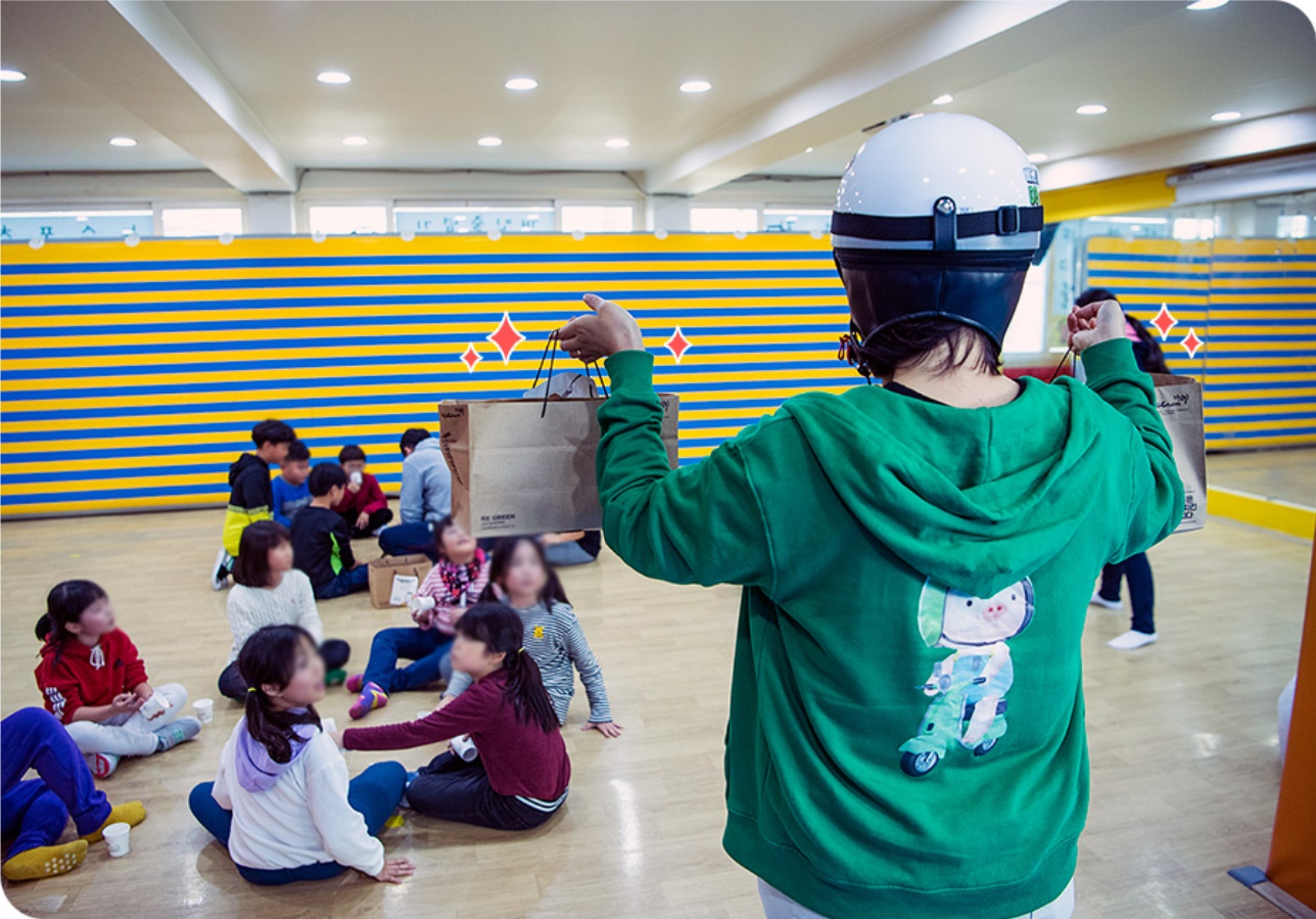 채 책임은 이런 딸들을 위해 ‘배달의 DB’ 이벤트를 신청했다. 이벤트 장소는 두 아이가 다니는 줄넘기 학원. 평소 맛있는 간식을 제때 챙겨주지 못한 미안한 마음과 운동 후 출출한 배가 든든하게 채워졌으면 하는 바람으로 사연을 적었다.