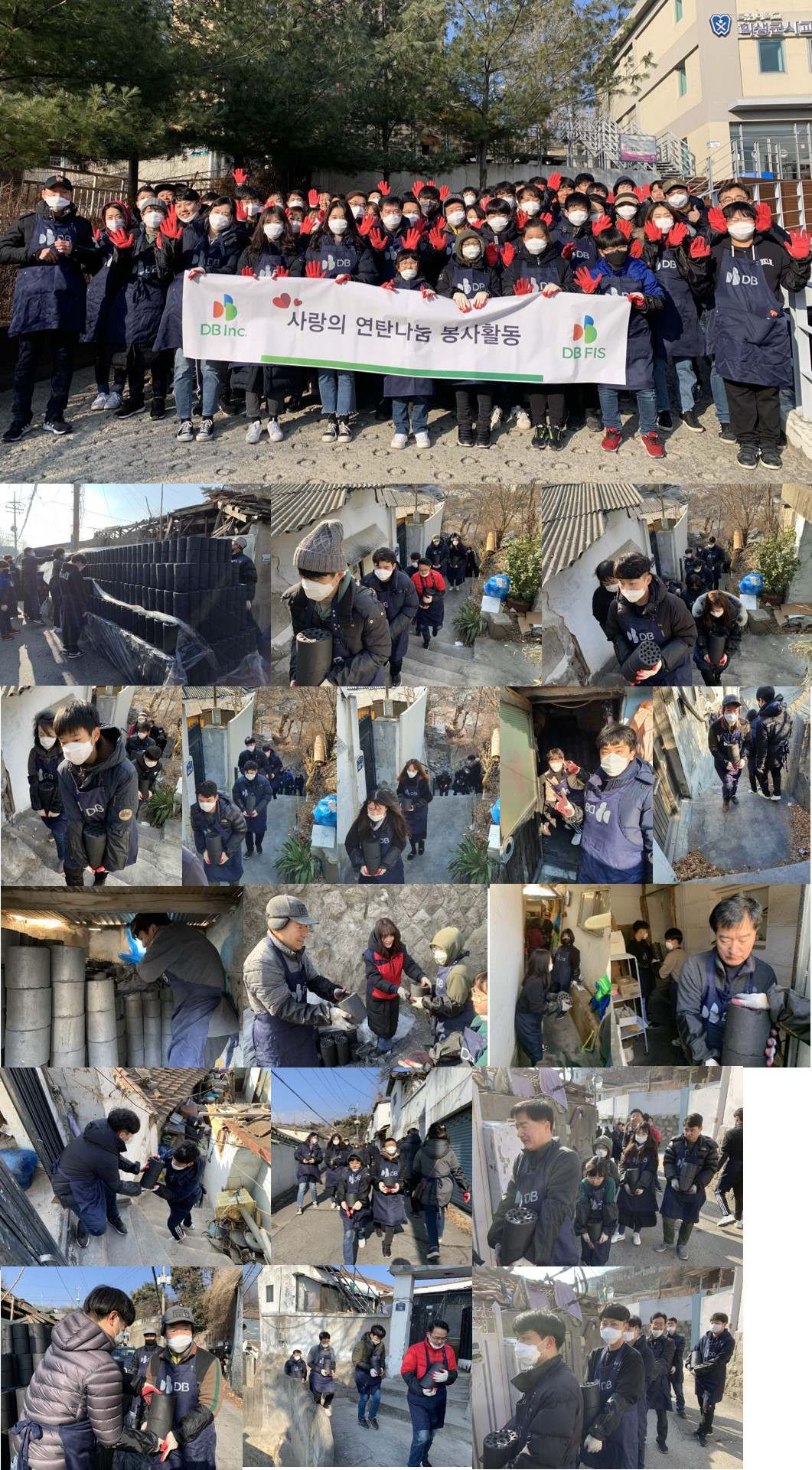 이 날 추운날씨와 급경사, 많은계단을 올라야하는 열악한 환경에도 불구하고 60명의 임직원과 어린 초중등 자녀, 열정가득한 20년 DB IncㆍDB FIS 신입사원들의 적극적 참여로 연탄 2,000장을 소외계층 10가구에 전달할 수 있었다.