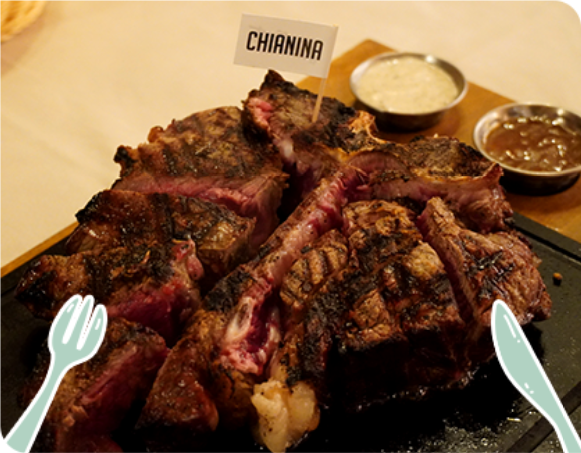 그런데 웬걸, 이번에도 쓸데없는 걱정이었다. 부모님은 나보다 더 맛있게 현지 음식을 드셨고 결과적으로 한식당은 여행 동안 단 한 번 방문하는 것에 그쳤다. 특히 맛있게 드신 것은 끼아니나 티본 스테이크와 트러플 까르보나라였다. 끼아니나(Chianina)는 이탈리아 토스카나 목초에서 자연 방사해 기른 소의 한 품종이다. 지방이 없어도 입안에서 부드럽게 녹는 게 정말 놀라웠다.