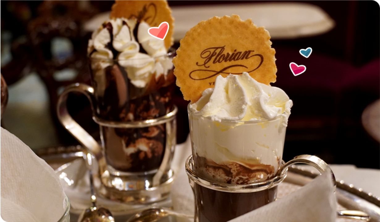 올해로 300년을 맞은 카페 플로리안(Caffe Florian)은 이탈리아에서 가장 오래된 카페다. 산마르코 광장에 위치해 있는데 낡은 외관을 그대로 두어 더욱 멋스럽다. 시인 괴테와 세기의 바람둥이인 카사노바도 사랑한 카페라고 한다. 핫초코가 유명하다고 해서 시켜 보았는데 적당한 달콤함에 고급스러운 플레이팅까지 맛도 분위기도 만점이었다.